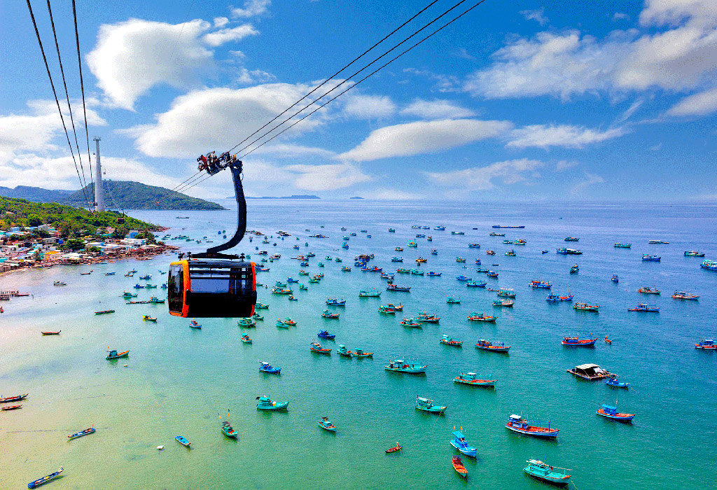 Tahukah kamu, cable car di Phu Quoc ini merupakan kereta gantung terpanjang di dunia (8 kilometer) di atas laut, melintasi beberapa pulau dan pantai.