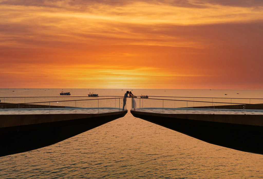 Sesuai namanya, di sini kamu bisa mendapatkan momen sempurna bareng pasanganmu dari dua sisi jembatan yang berbeda, bertemu jadi satu di bawah sunset Phu Quoc yang super romantis!